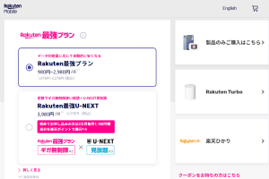 2: 楽天モバイルの申し込み画面から利用したいオプションを選択し、申し込みする。