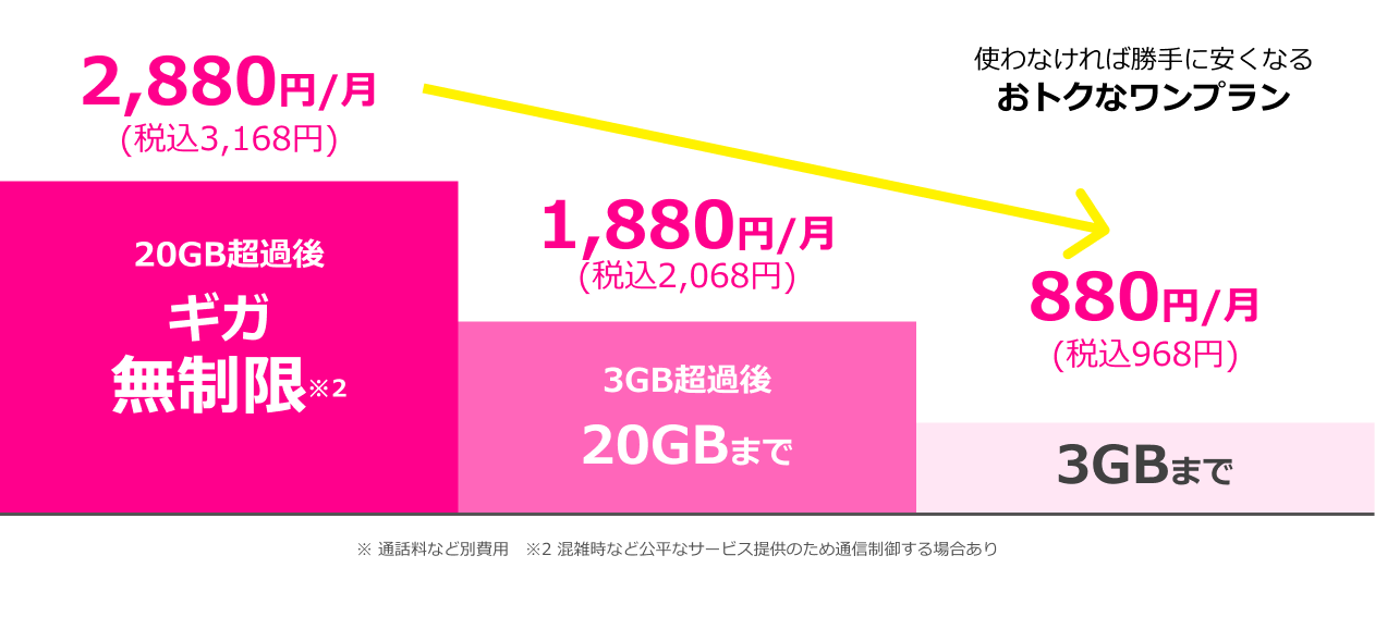 使わなければ勝手に安くなるお得でわかりやすいワンプランです!